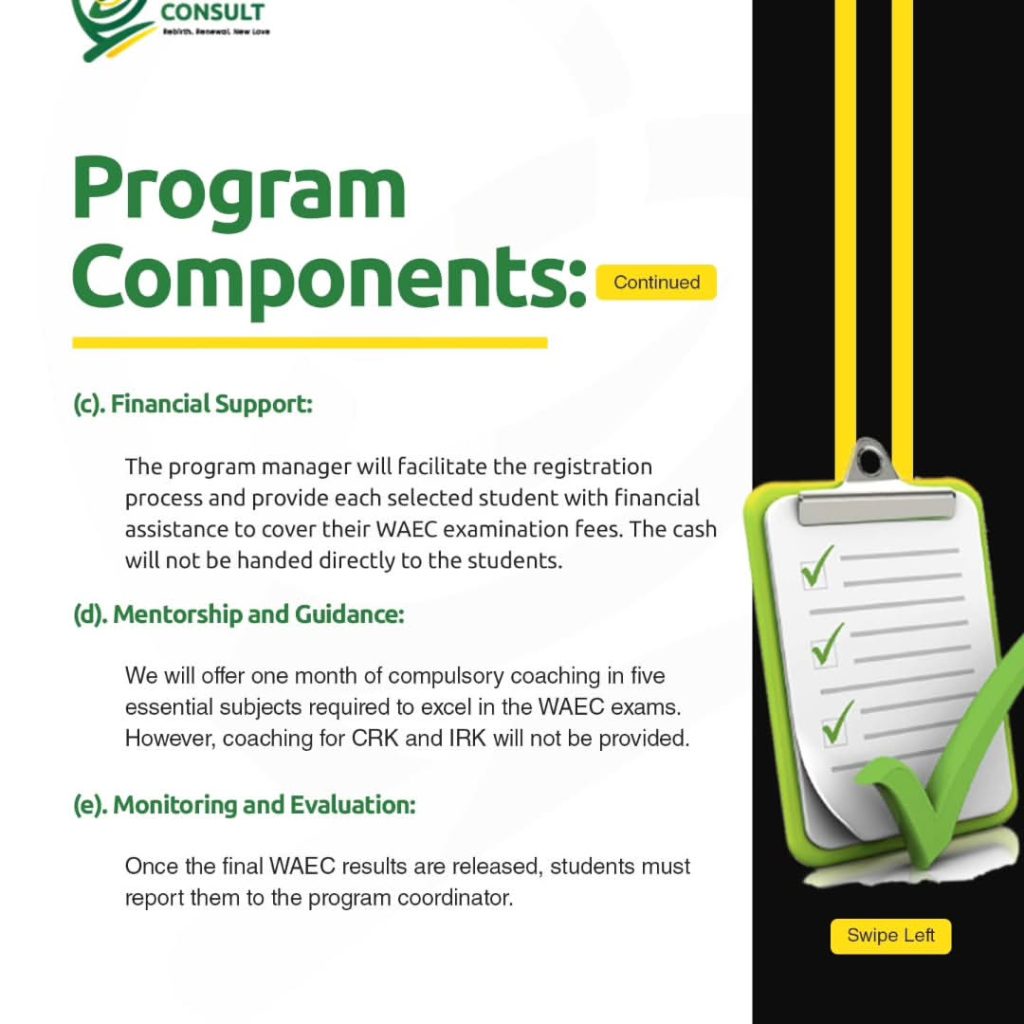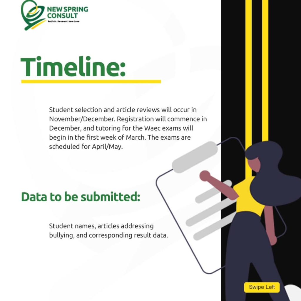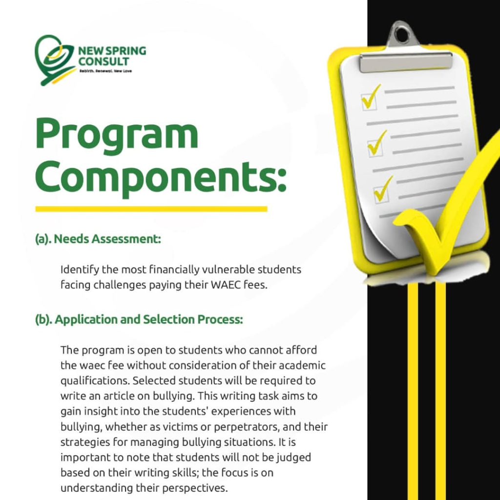 In October 2023, we designed our intervention program to assist few vulnerable populations struggling to pay their WACE fee. If you are familiar with Nigeria, you will understand that WAEC is the first big exam kids get exposed to. It’s detrimental to whether they are eligible to attend university or polytechnic. I designed this program through New Spring Consult using a holistic approach, not taking care of the fee but ensuring that any form of social determinants of education is taken care of at this time.