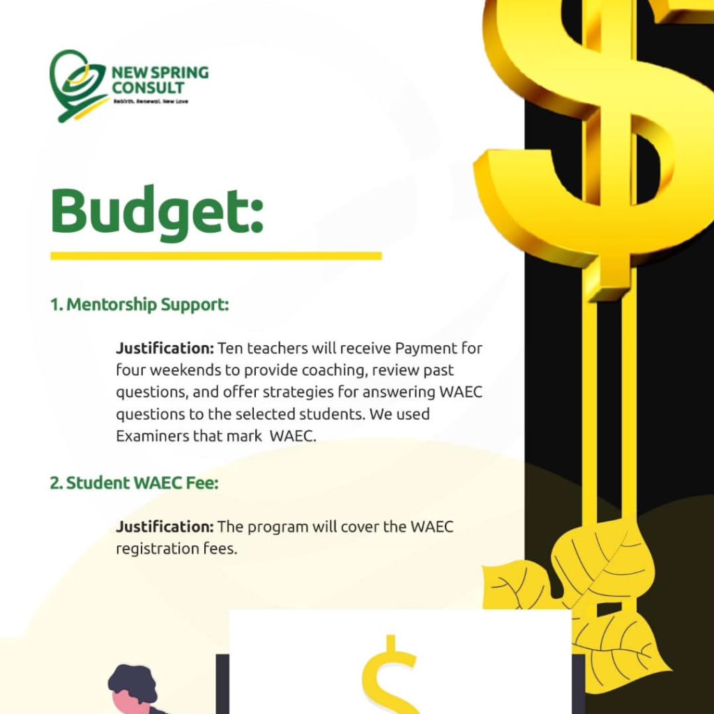 Many people will constantly ask me what we do at the New Spring Consult. One of our services is designing social intervention programs for people, institutions, and the government. For example, I designed this project based on my journey and story. I want to listen to your story and assist you with creating a holistic program that can help you pay it forward.